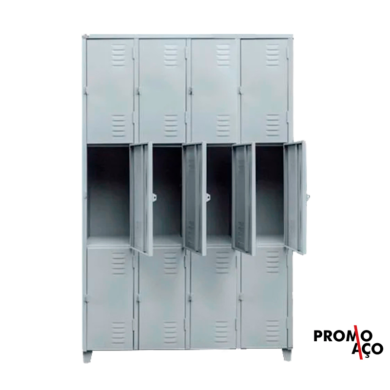 Está procurando aquele móvel para guardar seus pertences ou de seus funcionários? Aqui na PromoAço você encontra uma variedade de Roupeiros de aço com portas grandes e pequenas. O Roupeiro para vestiário com 12 portas médias Fatto possui espaço para armazenar suas roupas ou mochila. O guarda volume com 12 portas médias Fatto ainda conta com sistema de ventilação nas portas o que facilita ao armazenar roupas molhadas. Fácil para limpar, o armário guarda volume com 12 portas Fatto possui pés fixos em aço com 8cm de altura o que permite a lavagem do ambiente sem danificar o móvel. Dê um upgrade em seu vestiário com o roupeiro de aço com 12 portas médias Fatto.